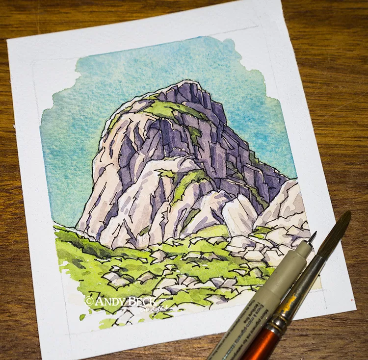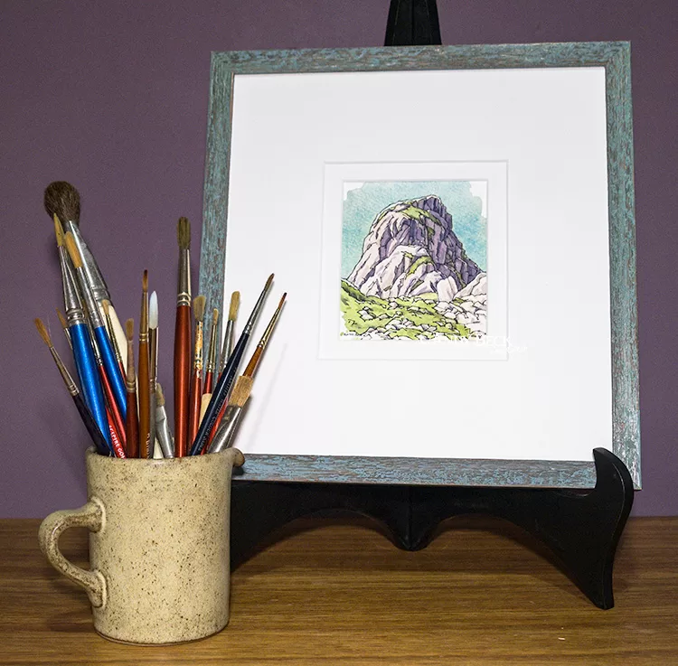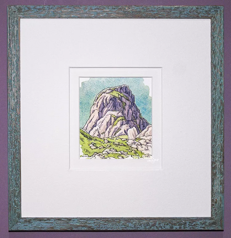 Pillar Rock- Original Pen and Wash actual painting size measures 100mm (4″) (H) x 90mm (3.5″) (W).