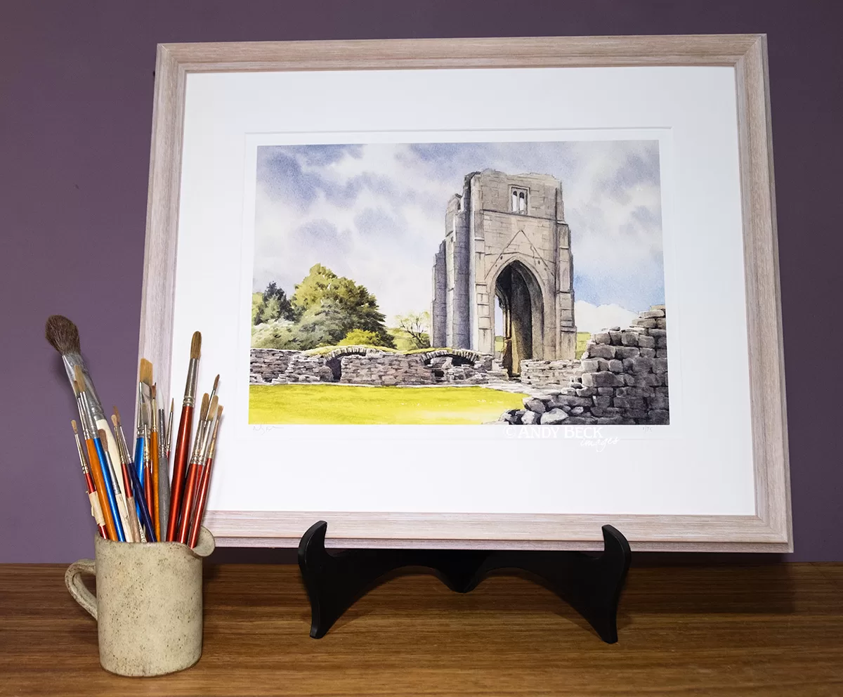 This is an Limited Edition Print, “Shap Abbey” reproduced from an original watercolour painting by Andy Beck. The print is the same dimensions as the original. Printed professionally using archival inks on 305gsm Pinnacle Fine Art paper which is 100% acid free. Each copy has been signed and numbered by the artist and is limited to just 75 copies.
